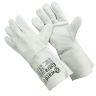 Цельноспилковые сварочные краги. Сшиты из высококачественного спилка КРС серого цвета. Данная конструкция перчаток расширяет возможности использования данных перчаток для работ в области сварки металла. Манжет удлиняет перчатку до общей длинны от кончика среднего пальца до конца манжета до 35 см и способствует эффективной защите запястья и вены от нежелательных царапин, порезов, ударов и т.д.